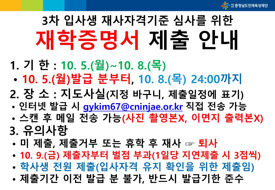 현재 퇴사하지 않은 미입실인 학사생도 제출대상입니다.