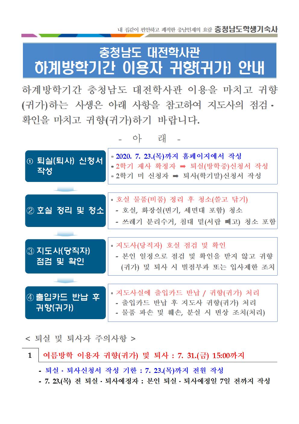 [필독] 충청남도 대전학사관 하계방학기간 이용자 귀향(귀가) 안내