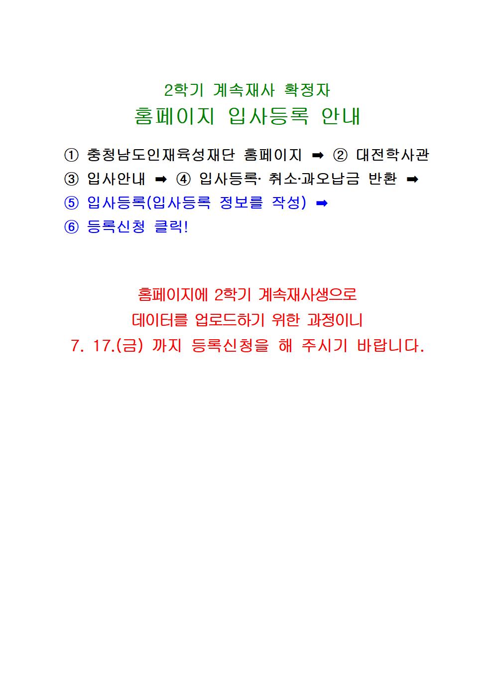 [알림] 2020년 2학기 계속재사 확정자 입사등록 안내