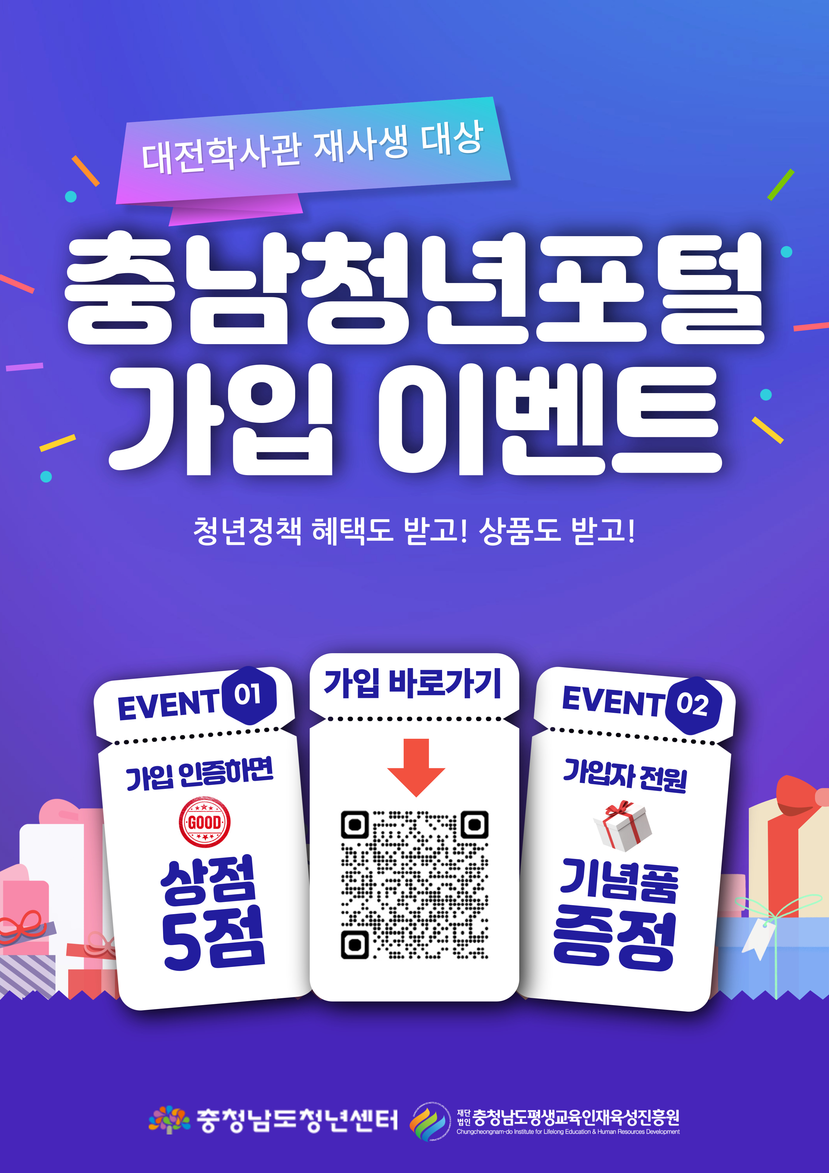 [알림] 충청남도 대전학사관 2학기 입사생 [충남청년포털] 회원가입 이벤트 안내