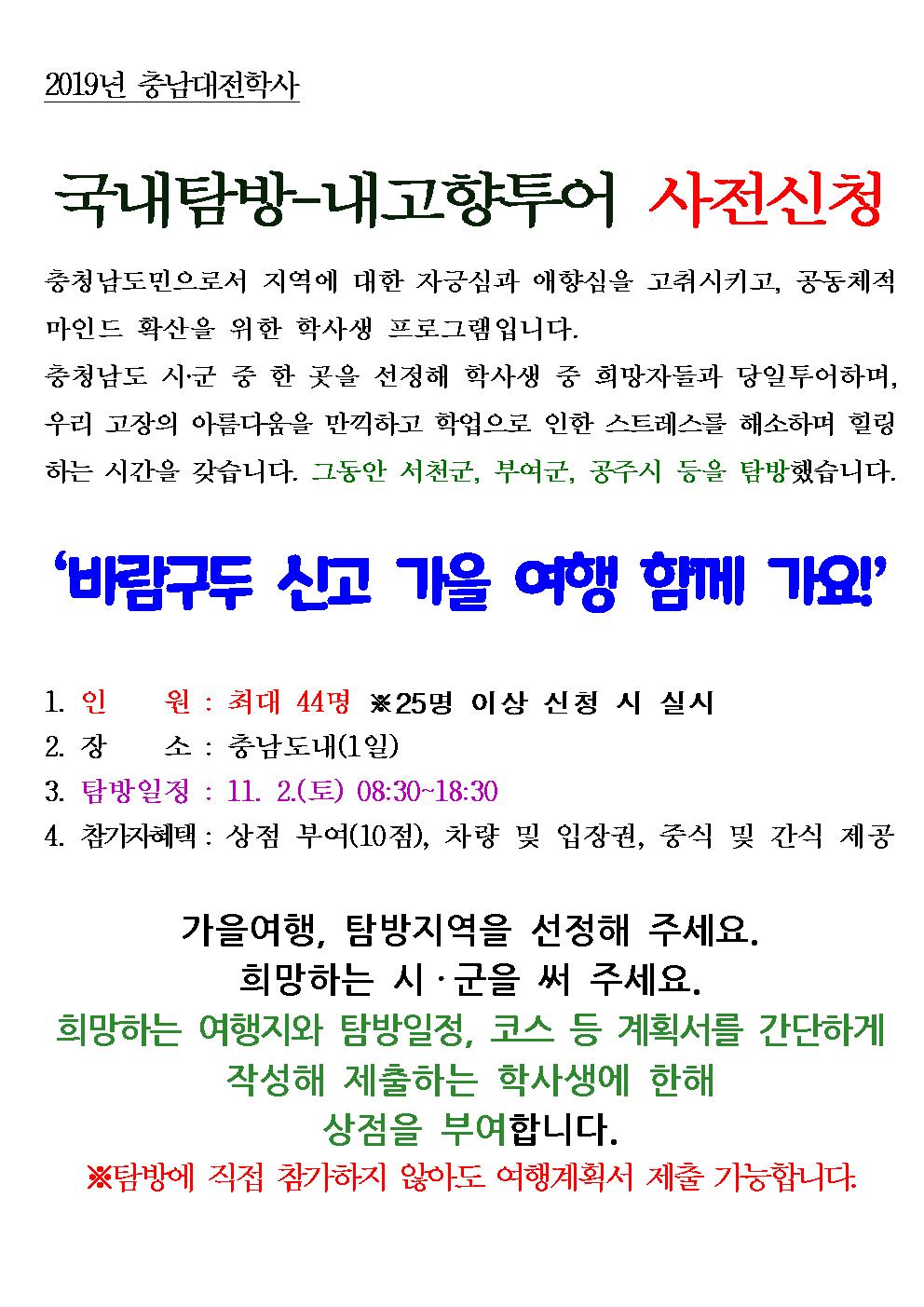 (알림) 국내탐방-내고향투어 참가 희망자 사전조사