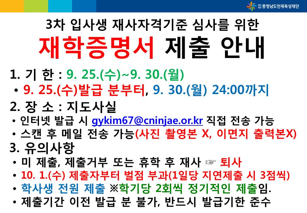 (알림) 재사생 자격기준 심사를 위한 3차 재학증명서 제출 안내