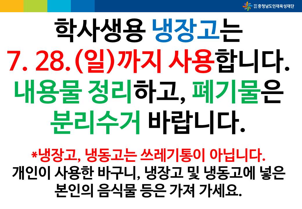 (알림) 하계방학기간 이용자 냉장고 및 냉동고 사용 안내