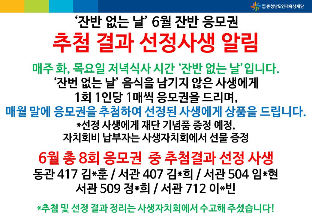 (알림) '잔반 없는 날' 6월 잔반 응모권 추첨 결과 선정사생 알림