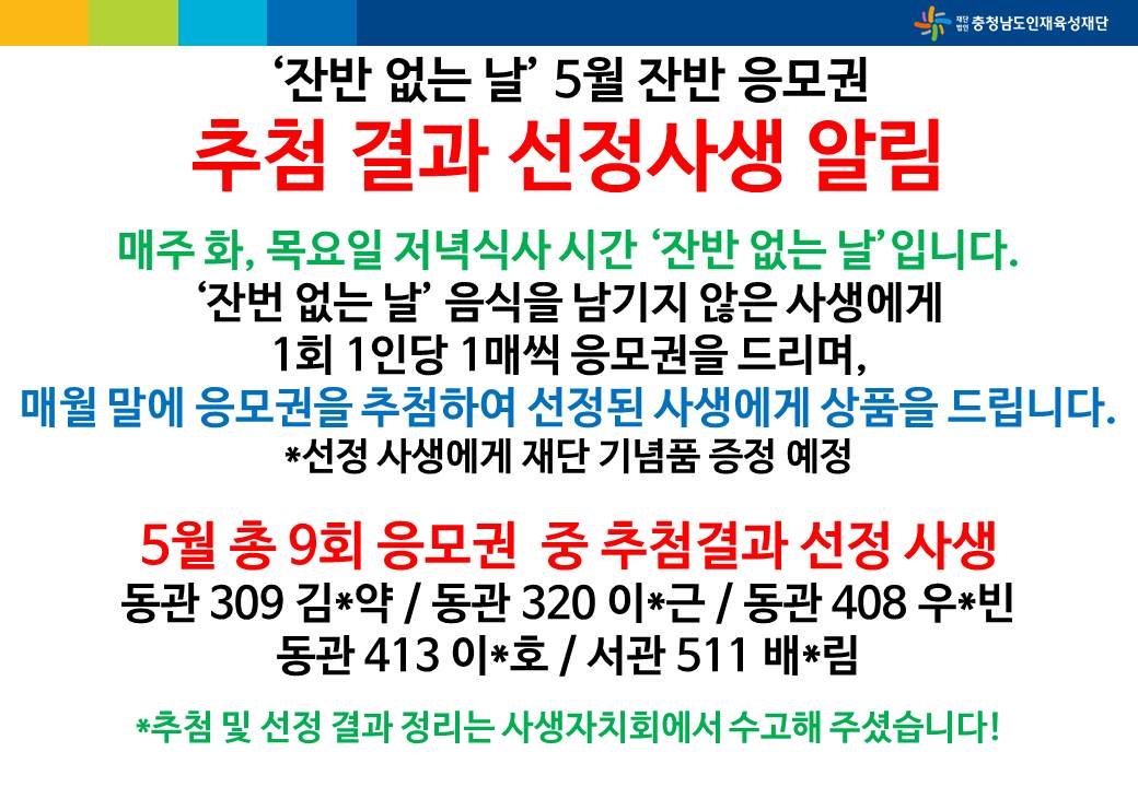 (알림) '잔반 없는 날' 5월 잔반 응모권 추첨 결과 선정사생 알림