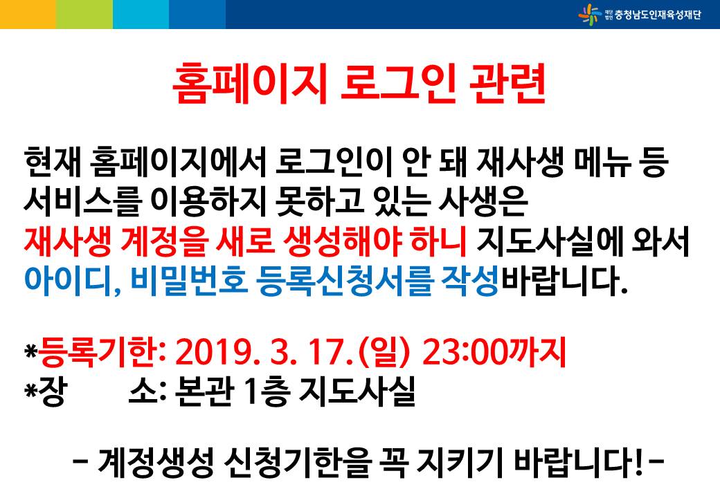 현재 홈페이지에서 로그인이 안 되는 사생은