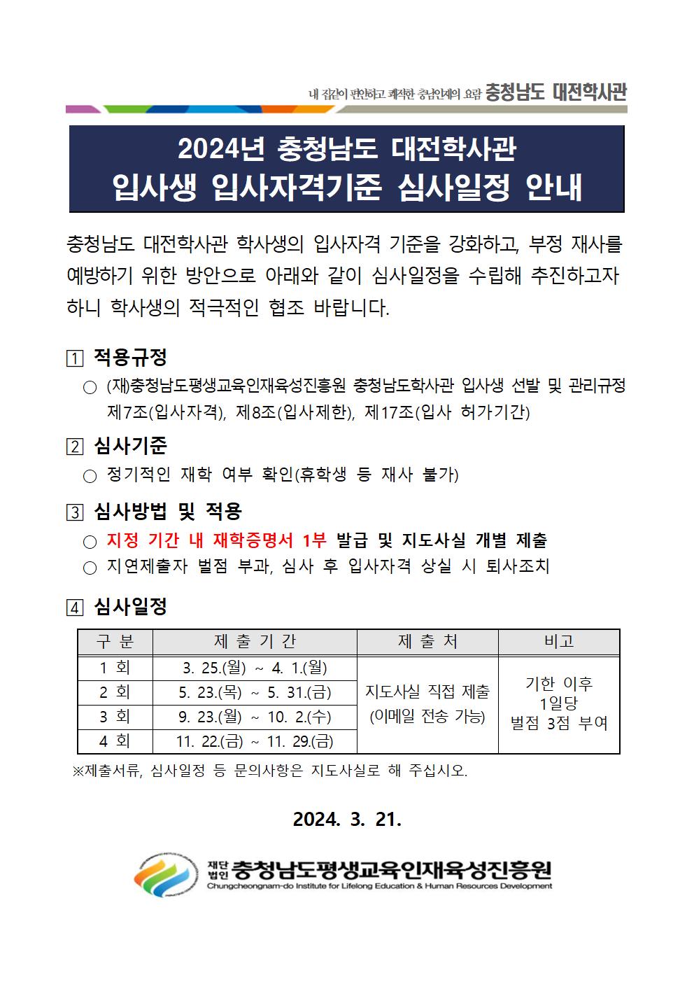 제출기간을 지켜야 하며, 기한 이후부터는 벌점 부과하니