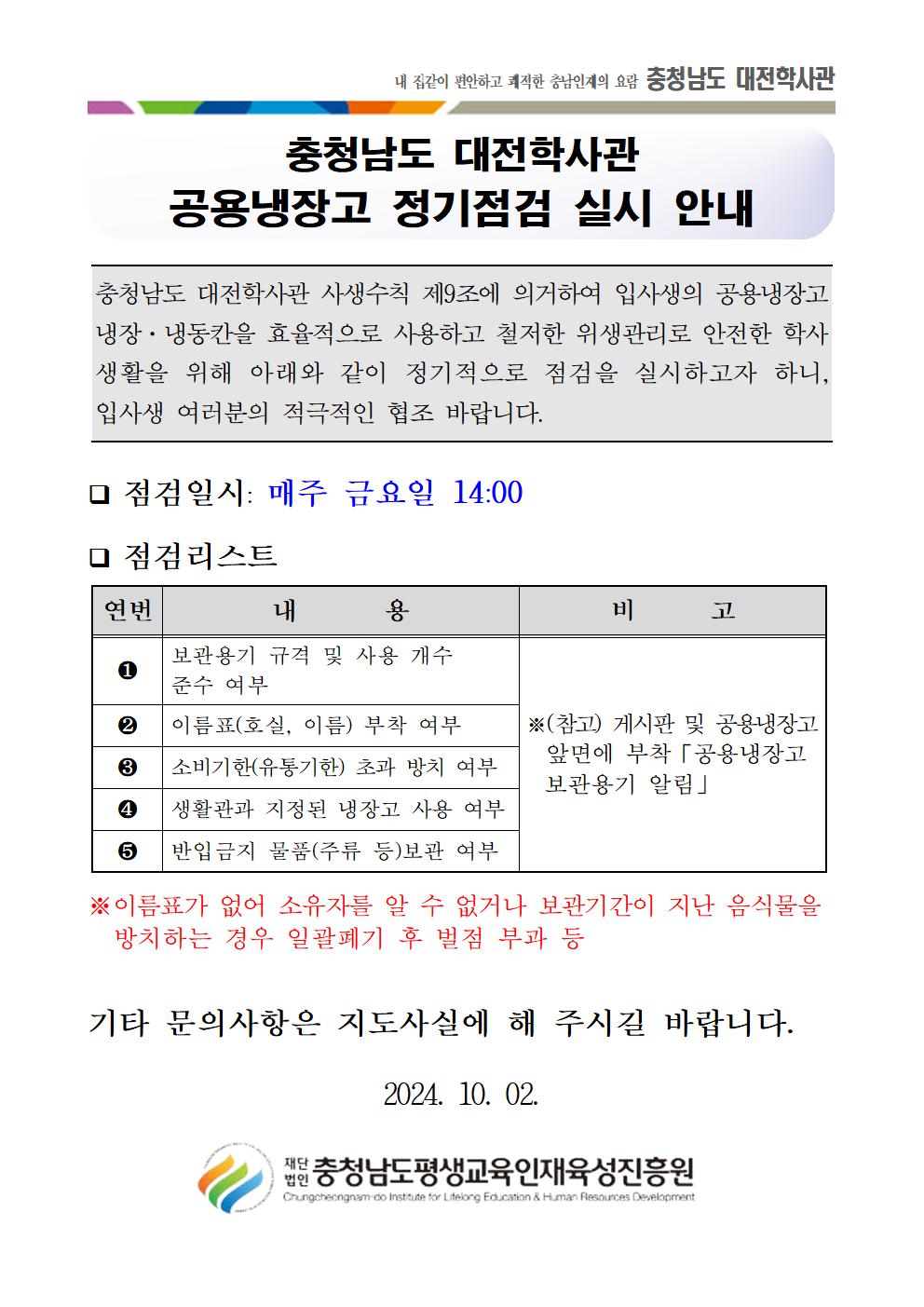 충청남도 대전학사관 공용냉장고 정기점검 실시 안내001.jpg