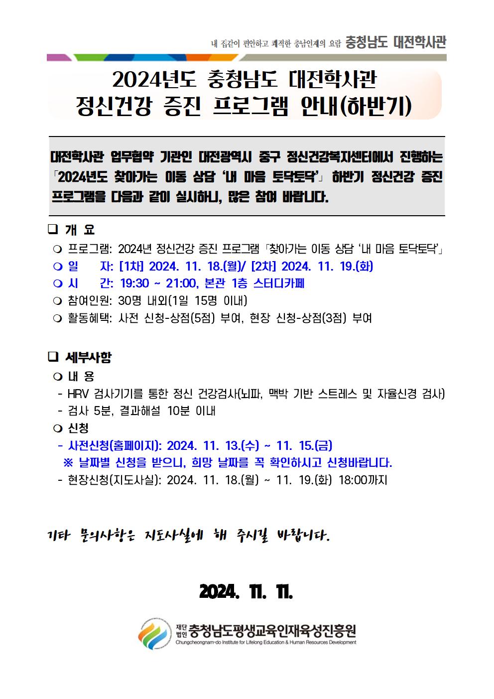 2024년도 충청남도 대전학사관 하반기 정신건강 증진 프로그램 안내문001.jpg