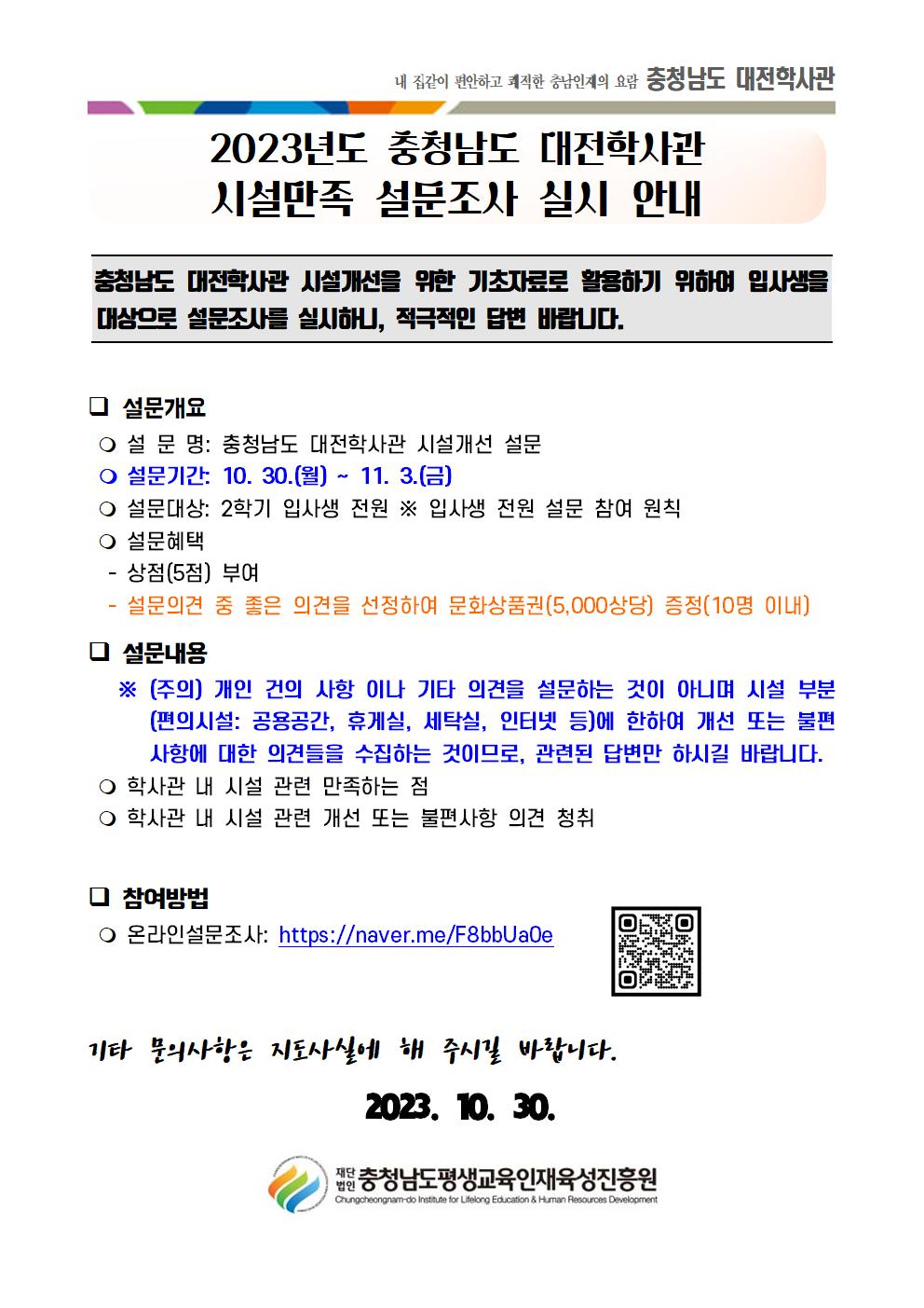 1. 2023년도 충청남도 대전학사관 시설만족 설문조사 실시 안내001.jpg