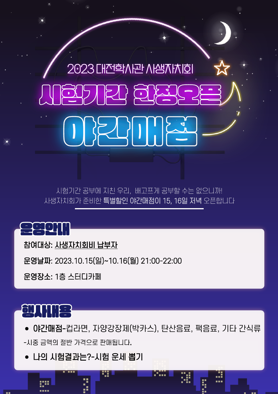 [알림] 2023 충청남도 대전학사관 사생자치회 시험기간 한정오픈 야간매점