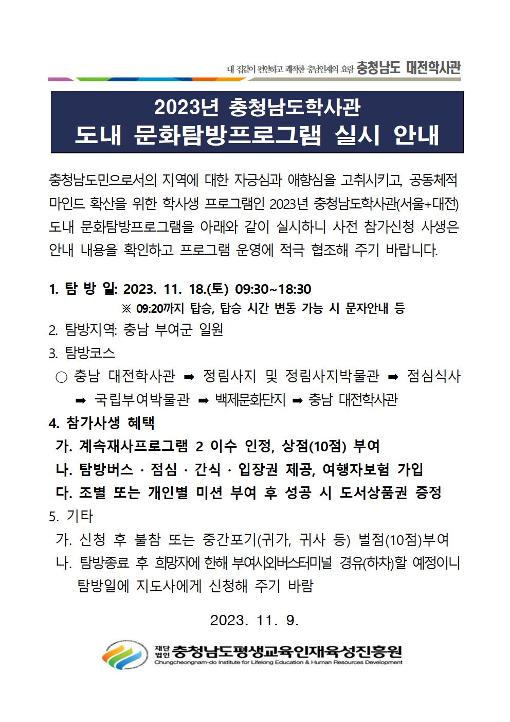 * 도슨트 안내 : 정림사지(11:20), 국립부여박물관(13:00), 백제문화단지(14:00)